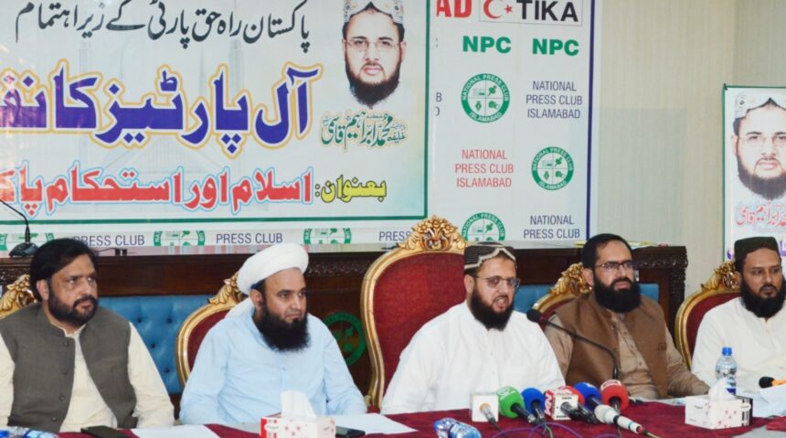 اسلام آباد میں منعقدہ آل پارٹیز کانفرنس نے مشترکہ طور پر جاری اعلامیہ میں بھارت کے خلاف آپریشن بنیان المرصوص کی مکمل حمایت کا اعلان کیا ہے اور اہم ملکی و مذہبی معاملات پر اپنی پالیسی واضح کی ہے۔ اعلامیہ میں توہین مذہب کے مقدمات کے حوالے سے اسلام آباد ہائی کورٹ کے فیصلے کو مسترد کرتے ہوئے فیصلہ کیا گیا کہ سیاسی جماعتوں کے ماہرین قانون اور مذہبی اسکالرز پر مشتمل رابطہ کمیٹی تشکیل دی جائے گی۔ اگر کسی متاثرہ خاندان کو لگے کہ اس پر توہین مذہب کا مقدمہ غلط ہے تو وہ اس کمیٹی سے رابطہ کر سکتا ہے۔