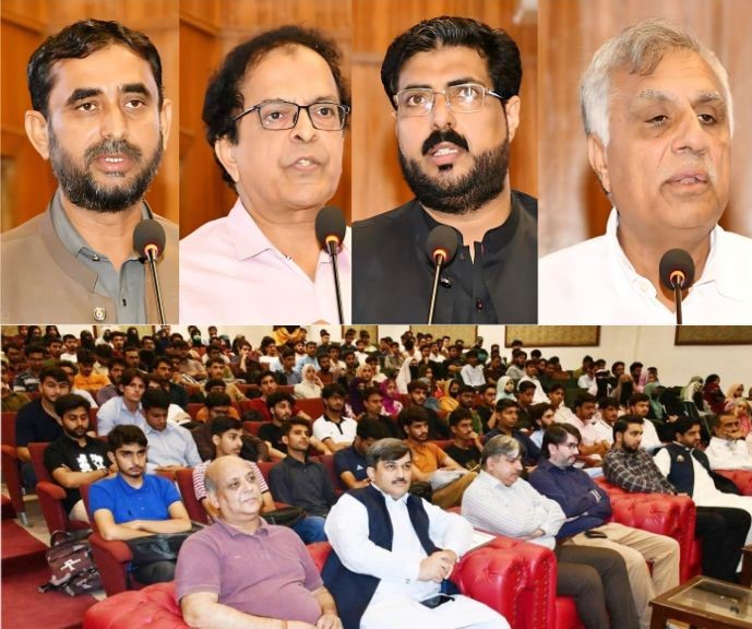 وائس چانسلر پروفیسر ڈاکٹر قمر الزمان نے اپنے خطاب میں کہا کہ ہم آپ کو پاکستان کی ایک ممتاز اور قائدانہ درسگاہ میں خوش آمدید کہتے ہیں۔ ہمارا مقصد آپ کے اندر علم کے لیے جذبہ بیدار کرنا اور ایک ایسا تعلیمی ماحول فراہم کرنا ہے جو جدت، تحقیق اور ذاتی ترقی کو فروغ دے۔ انہوں نے کہا کہ یونیورسٹی جدید سہولیات، صحت مند اور شمولیتی ماحول فراہم کرنے کے لیے پرعزم ہے تاکہ طلبہ اپنی صلاحیتوں کو نکھار سکیں اور اپنے خوابوں کو پورا کر سکیں۔