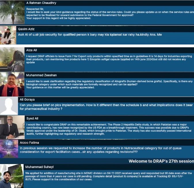 اسلام آباد: ڈرگ ریگولیٹری اتھارٹی آف پاکستان (DRAP) کو اپنی تازہ ترین ای-کچہری کے دوران شدید تنقید کا سامنا کرنا پڑا، کیونکہ شہریوں اور فارماسیوٹیکل صنعت کے نمائندوں نے بھرتیوں میں طویل تاخیر، التوا شدہ رجسٹریشن کیسز، اور سالوں سے زیر التوا لائسنس کی تجدید پر شدید ناراضی کا اظہار کیا۔ آن لائن سیشن، جس کی میزبانی ڈی آر اے پی کے سی ای او ڈاکٹر عبید اللہ نے کی اور اسے "ڈی آر اے پی سے متعلق تمام شکایات کو حل کرنے” کے موقع کے طور پر مشتہر کیا گیا تھا، تیزی سے ایک حقیقی احتسابی فورم میں تبدیل ہو گیا جہاں عوام نے ریگولیٹری باڈی کے اندر موجود نظام کی خامیوں کو بے نقاب کیا۔