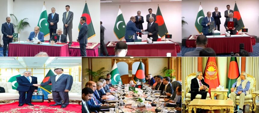 تقریب میں متعدد معاہدوں اور مفاہمتی یادداشتوں پر دستخط ہوئے، جن میں وزیراعظم اسحاق ڈار، بنگلہ دیش کے مشیر برائے خارجہ امور محمد توحید حسین، پاکستان کے ایڈیشنل فارن سیکریٹری (ایشیا پیسفک) سفیر عمران احمد صدیقی اور دونوں ممالک کے اعلیٰ عہدیداران موجود تھے۔