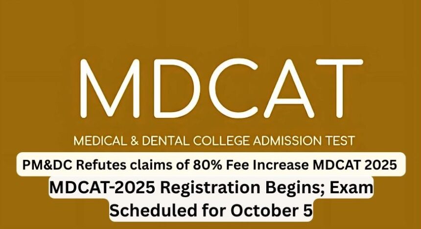 پاکستان میڈیکل اینڈ ڈینٹل کونسل نے ایم ڈی کیٹ 2025 کی فیس میں 80 فیصد اضافے کی خبروں کو مسترد کرتے ہوئے وضاحت کی ہے کہ اس سال فیس صرف 12.5 فیصد بڑھی ہے۔ کونسل کے مطابق ایم ڈی کیٹ 2025 کے لیے رجسٹریشن کا آغاز ہو چکا ہے اور امتحان 5 اکتوبر کو منعقد ہوگا۔