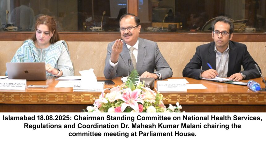 اسلام آباد میں قومی اسمبلی کی قائمہ کمیٹی برائے نیشنل ہیلتھ سروسز، ریگولیشنز اور کوآرڈینیشن کا اجلاس چیئرمین ڈاکٹر مہیش کمار ملانی کی زیرصدارت منعقد ہوا، جس میں پاکستان میڈیکل اینڈ ڈینٹل کونسل (پی ایم ڈی سی) اور میڈیکل اینڈ ڈینٹل کالج ایڈمیشن ٹیسٹ (ایم ڈی کیٹ) 2026 سے متعلق اہم معاملات پر غور کیا گیا۔ اجلاس میں طلبہ، خصوصاً اسرائیل یونیورسٹی اور بیرون ملک سے آئے ہوئے طلبہ کے مسائل اور صحت کے شعبے کے دیگر اہم امور زیر بحث آئے۔