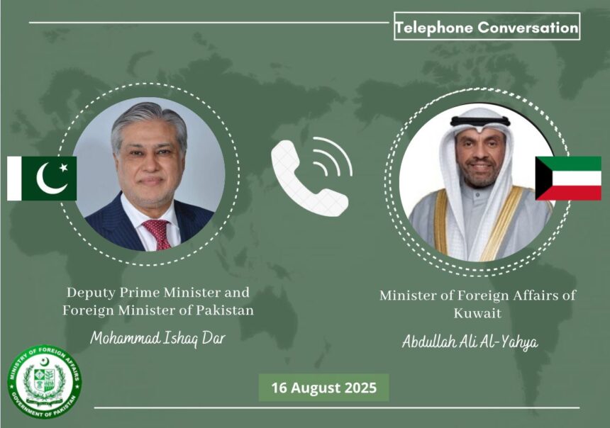 پاکستان کے نائب وزیر اعظم اور وزیر خارجہ، سینیٹر محمد اسحاق ڈار نے کویت کے وزیر خارجہ عبداللہ الیحییٰ سے ٹیلیفون پر گفتگو کی جس میں کویتی قیادت کی جانب سے شمالی پاکستان میں حالیہ سیلاب سے ہونے والے جانی اور مالی نقصان پر افسوس کا اظہار کیا گیا۔ کویت نے یقین دلایا ہے کہ مشکل کی اس گھڑی میں پاکستانی عوام کی ہر ممکن مدد کی جائے گی۔