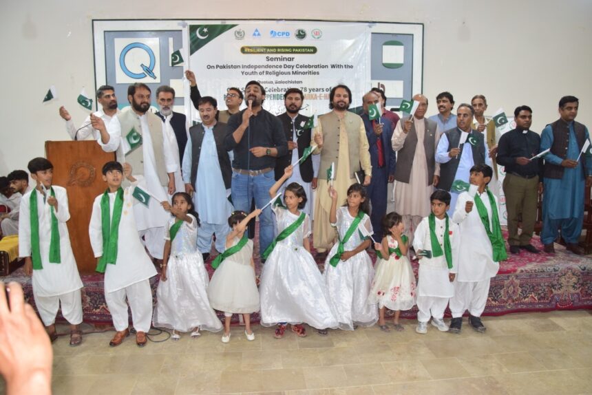 کوئٹہ میں یومِ آزادی کے سلسلے میں "ریزیلینٹ اینڈ رائزنگ پاکستان” مہم کے تحت ایک خصوصی تقریب منعقد کی گئی جس میں نوجوانوں اور مذہبی اقلیتوں کے نمائندوں سمیت خواتین، بچے اور معذور افراد نے بڑی تعداد میں شرکت کی۔ اس تقریب کا مقصد قومی یکجہتی، وطن سے محبت اور پاکستان کی ثقافتی و مذہبی ہم آہنگی کو فروغ دینا تھا۔