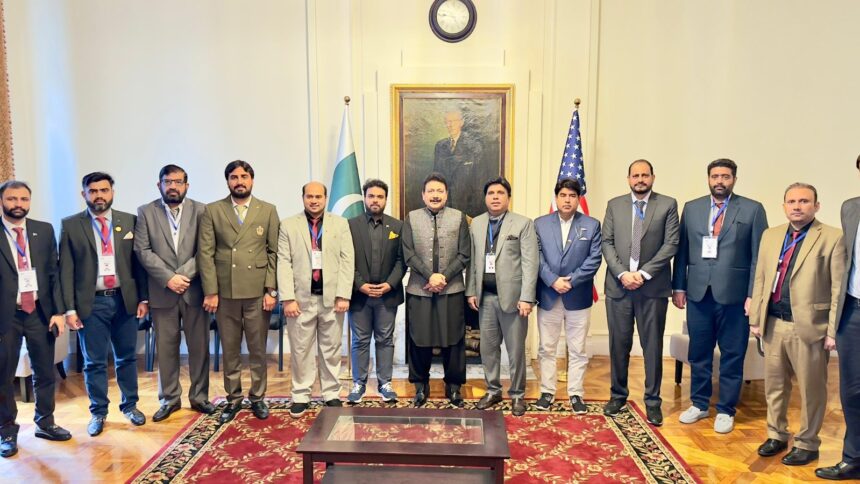 قونصلیٹ جنرل آف پاکستان نیویارک نے گلوبل ٹریڈ اینڈ ایکسپو سنٹر اسلام آباد کی جانب سے آنے والی اعلیٰ سطحی تجارتی وفد کا استقبال کیا جس کا مقصد امریکی مارکیٹ میں پاکستانی چھوٹے اور درمیانے درجے کے کاروبار (SMEs) کی برآمدات کو فروغ دینا تھا۔ مختلف شعبوں سے تعلق رکھنے والے تاجر نمائندوں کو قونصل جنرل کی جانب سے تجارتی رابطوں، ریگولیٹری معاونت اور امریکی کاروباری مواقع سے روشناس کروانے کی یقین دہانی کرائی گئی۔