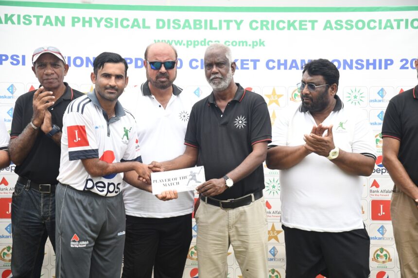 پاکستان فزیکل ڈس ایبیلیٹی کرکٹ ایسوسی ایشن کے زیر اہتمام راشد لطیف کرکٹ اکیڈمی گراؤنڈ میں جاری ٹورنامنٹ کے دوسرے روز صدر عمران بلوانی، سیکریٹری جنرل اور ایونٹ ڈائریکٹر عامرالدین انصاری، قومی ٹیم کے ہیڈ کوچ صبیح اظہر، کوئٹہ ریجن کے سربراہ اسلم بدیچ، لاہور-سیالکوٹ ریجن کے جاوید اشرف، پی ڈی کرکٹ کے بانی محمد نظام اور دیگر اہم شخصیات موجود تھیں۔